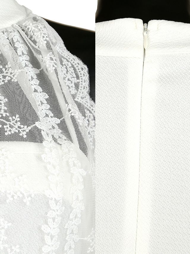 シンプルなレースデザイン♪ ホルターネックノースリーブ胸元フリルネックレースハイウエスト切替フレアミニドレス (せいせい着用)