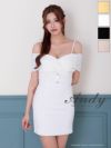 3. [Andy/アンディ] 高級 オフショルダー ワンカラー タック 谷間 シンプル タイト ミニキャバドレス