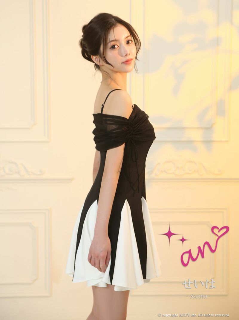 3. [an/アン] 高級 Aライン ミニドレス オフショルダー キャミソール 肩出し 二の腕カバー 2way 取り外し可能
