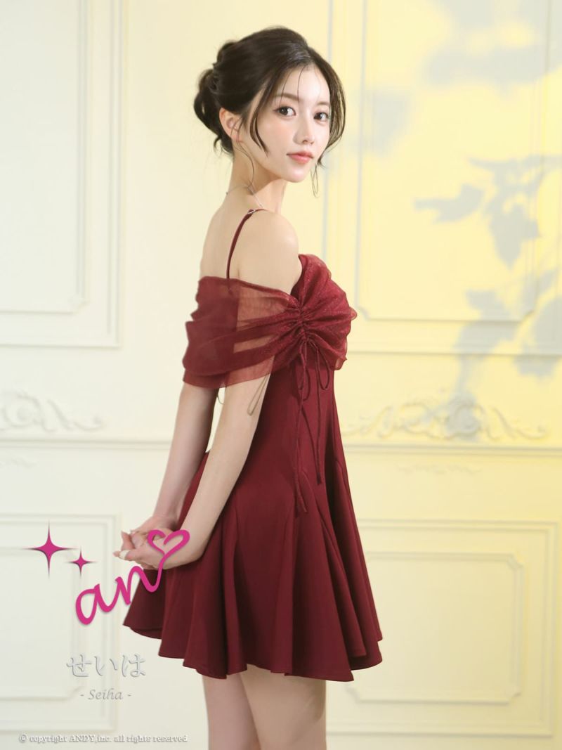 4. [an/アン] 高級 Aライン ミニドレス オフショルダー キャミソール 肩出し 二の腕カバー 2way 取り外し可能