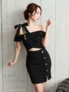 6. [AndyGLAMOROUS/アンディグラマラス] 高級オフショルダーウエストカットゴールドボタンチェーンリボンタイトミニドレス