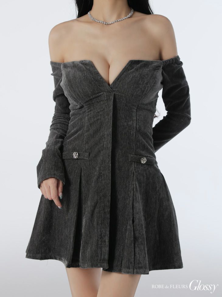 他の画像を見る 大胆な谷間魅せで視線をキャッチ♡ [ROBEdeFLEURSGlossy/ローブドフルールグロッシー] 高級 ブランド Aラインミニドレス 長袖 袖あり 谷間 オフショルダー セットアップ ジップ ドロストデザイン プリーツ ¥ 27,280 税込 お気に入りに追加
