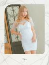4. オフショルダー 袖あり 五分袖 バストカット ジップ 総レース 谷間魅せ タイトミニドレス (Sサイズ~XLサイズ) (りせり/キャバドレス着用)