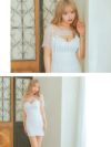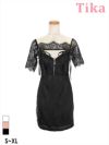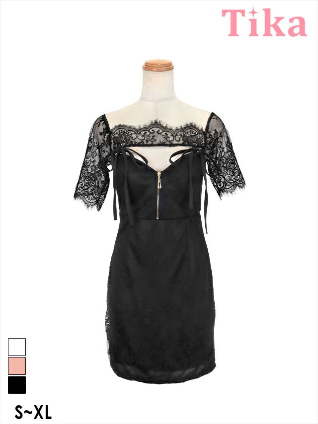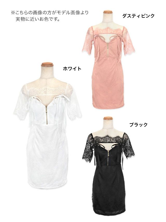 オフショルダー袖ありレースバストカットジップ総レースタイトミニドレスのカラーバリエーション