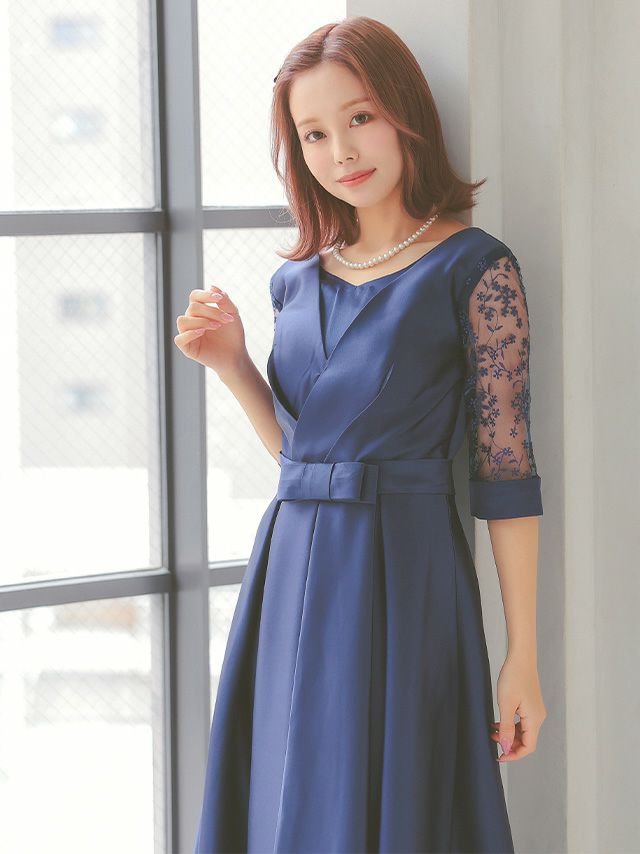 他の画像を見る フェミニンな雰囲気を演出♪ [SALE] 刺繍レースサテン切替七分袖膝下ベルスリーブ結婚式パーティードレス [Retica/レティカ] ¥ 11,000 ¥ 10,780 税込 お気に入りに追加