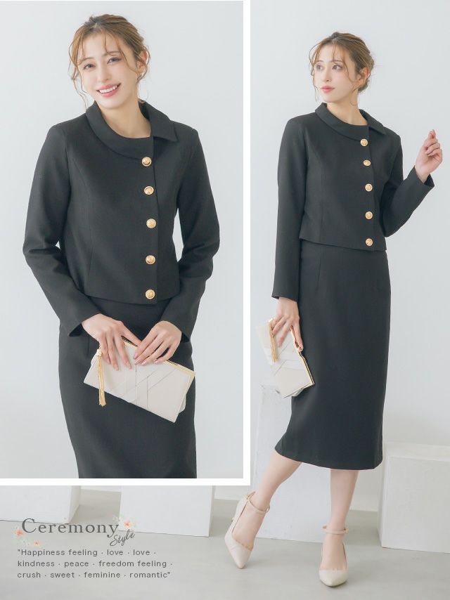 他の画像を見る クラシカルな雰囲気漂う大人キレイめスーツ♪ [SALE] ラウンドカラーゴールドボタンジャケット×膝下タイトスカートスタイルセレモニースーツ [Retica/レティカ] ¥ 15,180 ¥ 10,780 税込 お気に入りに追加