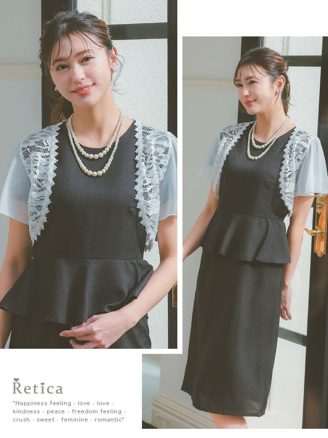 他の画像を見る トップスとボトムのバランスが◎ [SALE] デコルテレース切り替えベルト付きペプラムトップス×スレートパンツツーピース結婚式パーティードレス [Retica/レティカ] ¥ 12,100 ¥ 8,690 税込 お気に入りに追加