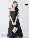 上品で涼しげな一着☆ [DEA.byROBEdeFLEURS/ディアバイローブドフルール] 高級チェック柄キャミソールリボンシフォンオーガンジーAラインロングドレス
