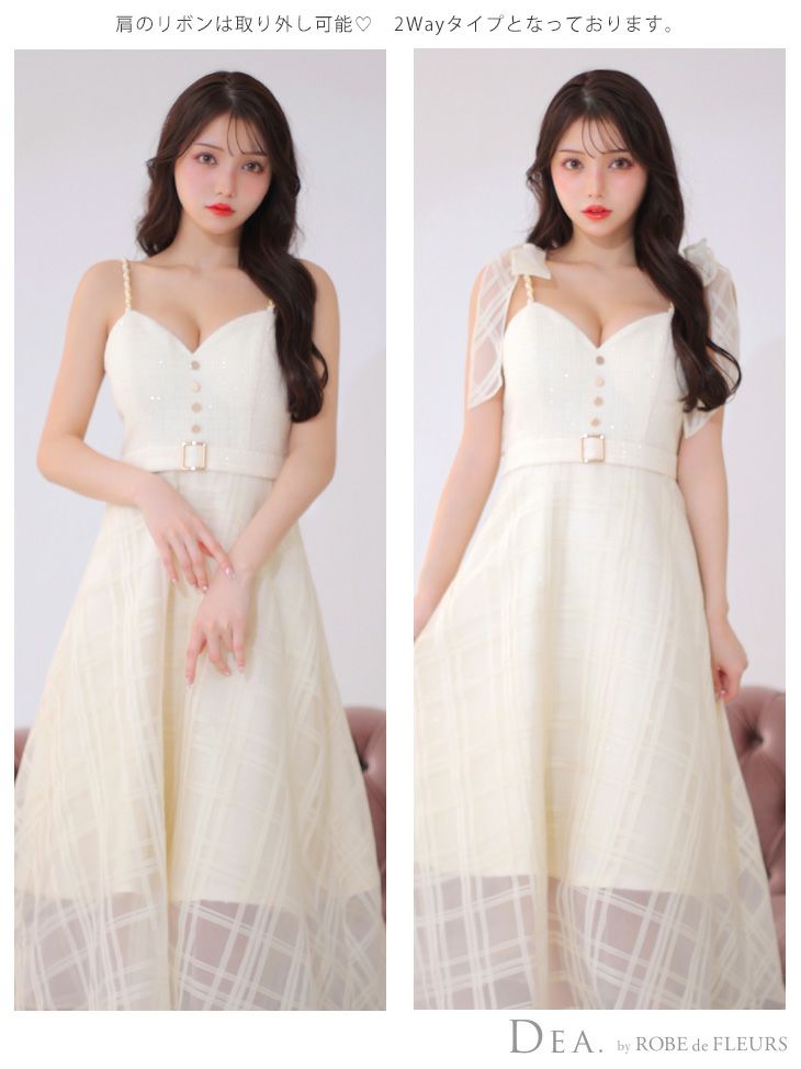 4. [DEA.byROBEdeFLEURS/ディアバイローブドフルール] 高級ラメツイードキャミソールチェック柄オーガンジーワンピースAラインロングドレス