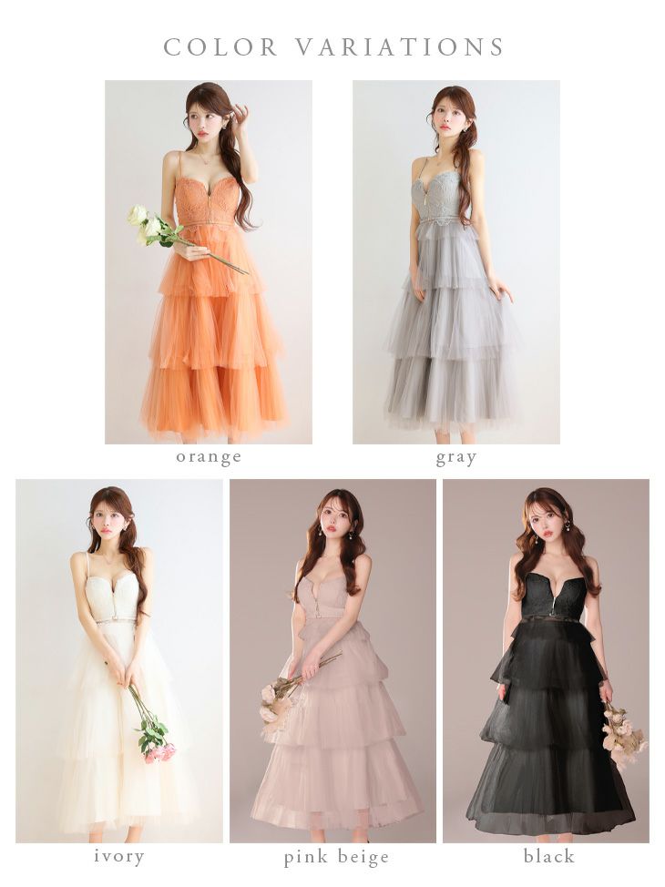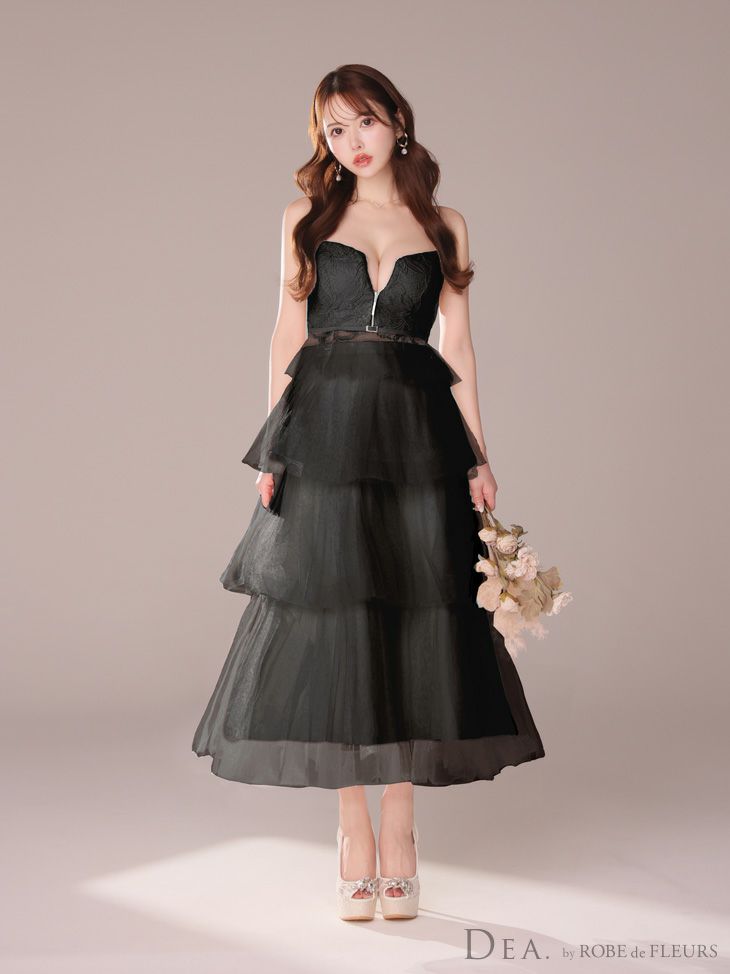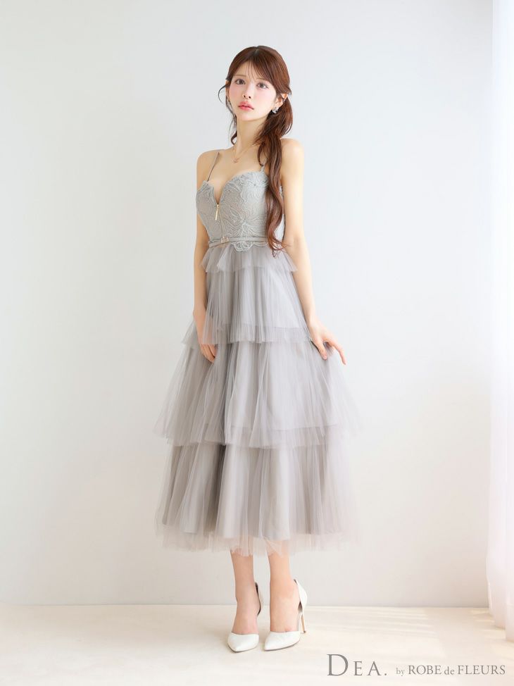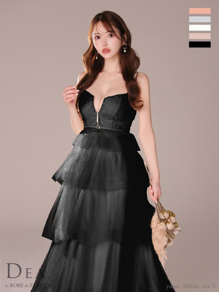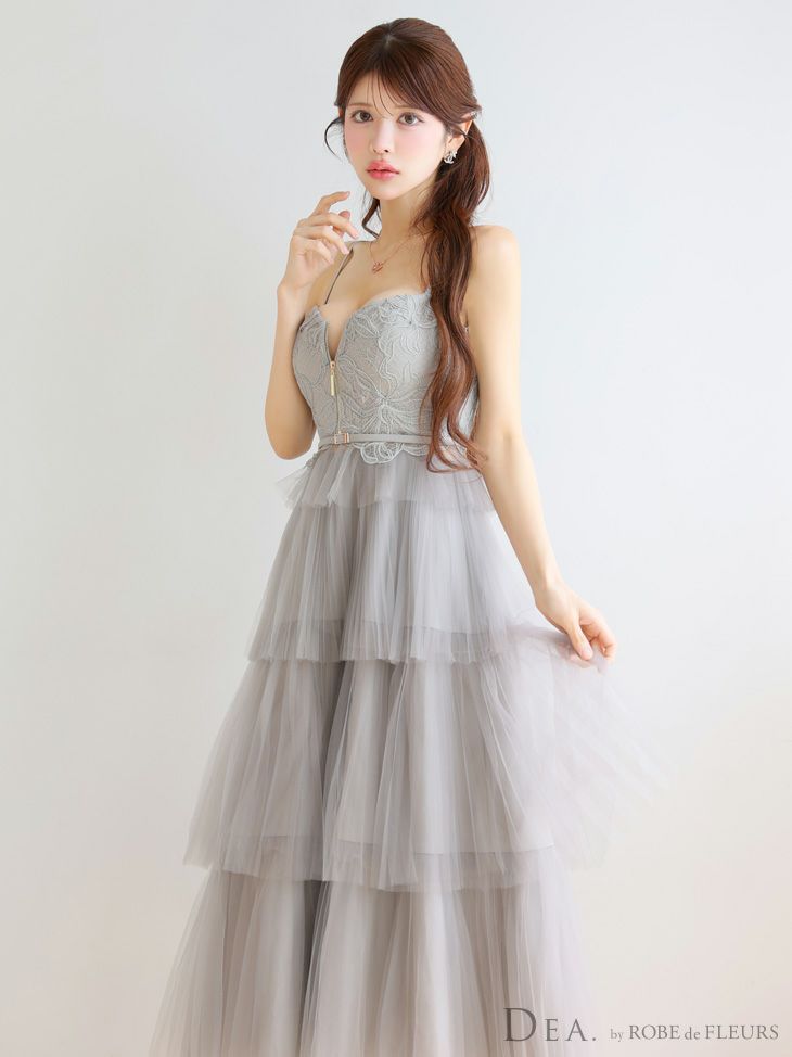 5. 予約商品【5月中旬入荷予定】[DEA.byROBEdeFLEURS/ディアバイローブドフルール] 高級 バースデーキャミソールレースチュールウエストベルトジップAラインロングドレス