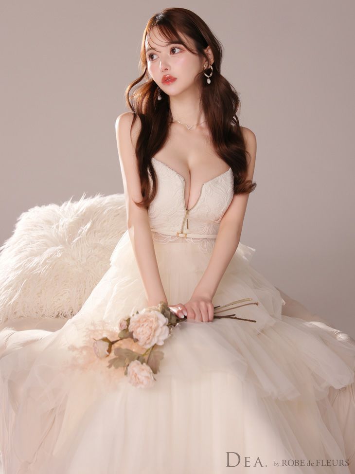 6. 予約商品【5月中旬入荷予定】[DEA.byROBEdeFLEURS/ディアバイローブドフルール] 高級 バースデーキャミソールレースチュールウエストベルトジップAラインロングドレス
