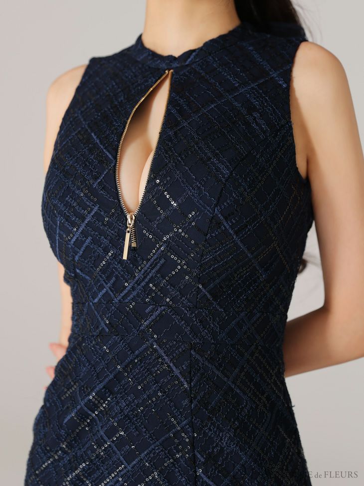ジップからチラ魅えする谷間がセクシー☆ [DEA.byROBEdeFLEURS/ディアバイローブドフルール] 高級チェック柄ノースリーブジップマーメイドフリルロングテールドレス
