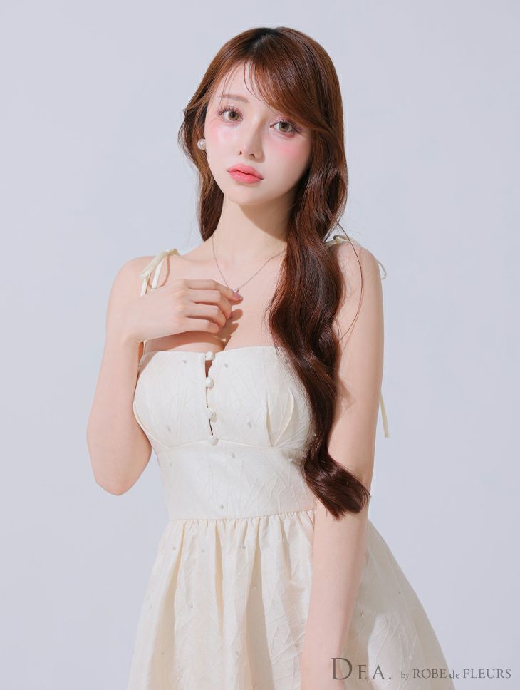 清楚な可愛さを纏う♡ [DEA.byROBEdeFLEURS/ディアバイローブドフルール] 高級 キャミソール 胸元パール ジャガード サテン Aラインロングドレス