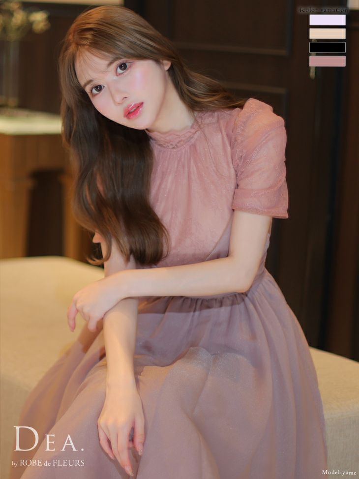 おでかけや女子会にも☆ [DEA.byROBEdeFLEURS/ディアバイローブドフルール] 高級チュール×レースブラウスセット半袖フレア膝丈ワンピースドレス