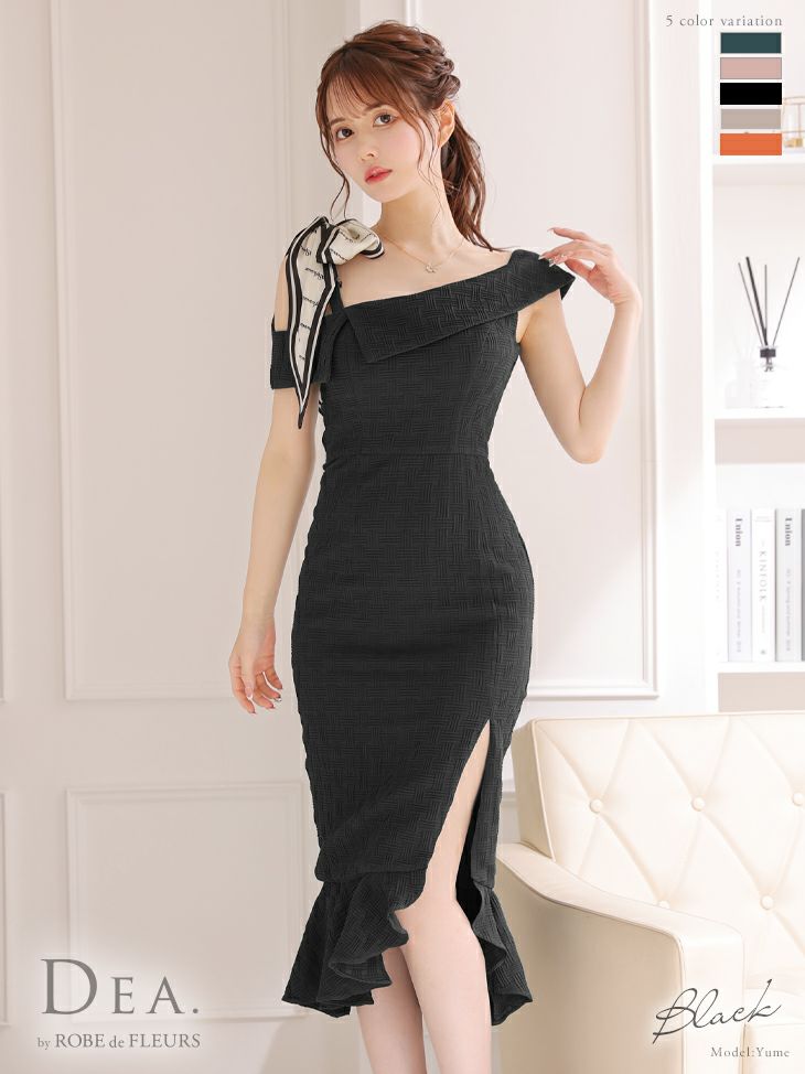 DEA.byROBEdeFLEURS ディアバイローブドフルール 高級スカーフ付きワッフルスリット膝丈マーメイドタイト膝丈ドレス