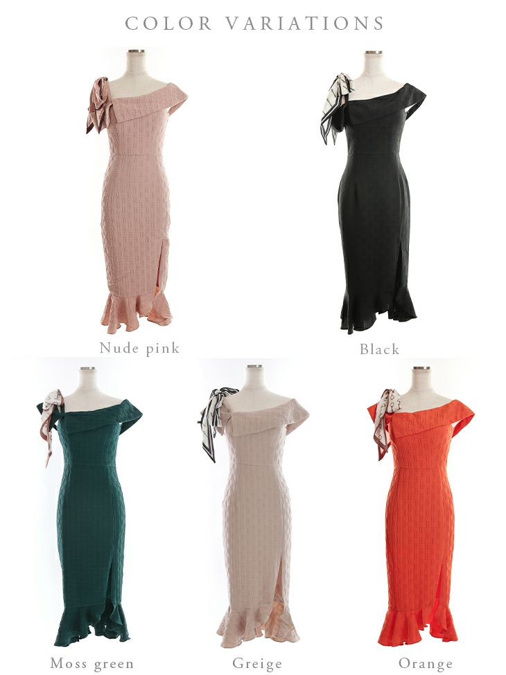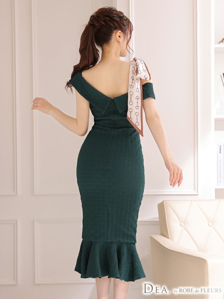 5. [DEA.byROBEdeFLEURS/ディアバイローブドフルール] 高級スカーフ付きワッフル膝丈マーメイドタイト膝丈ドレス