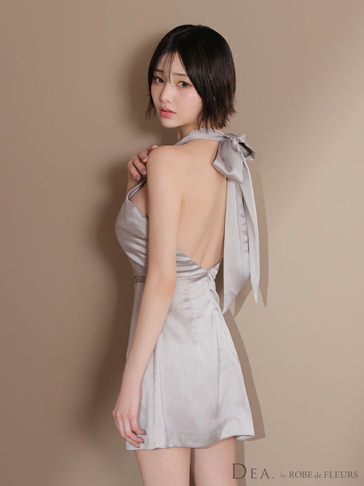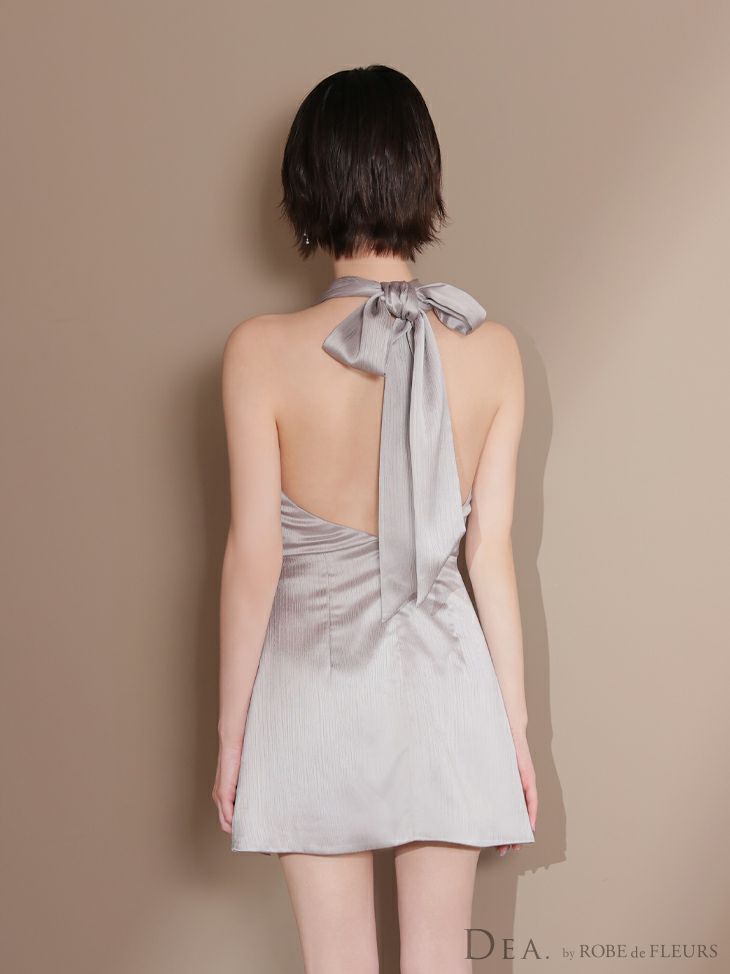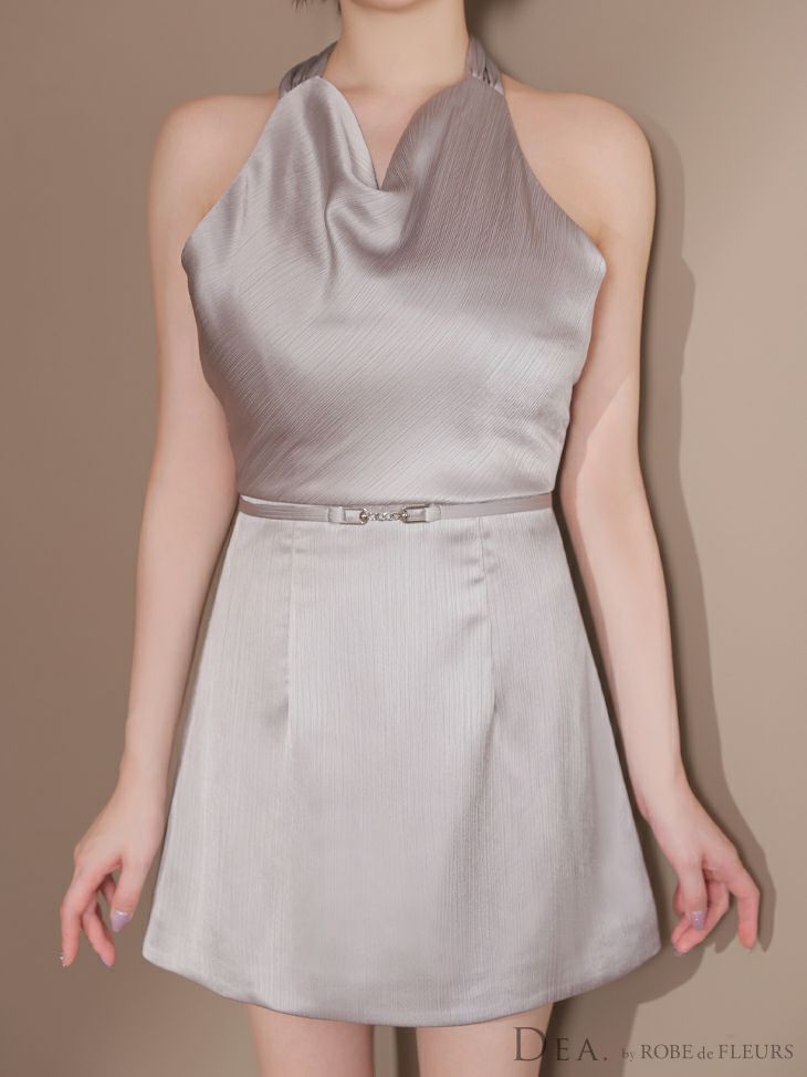 シンプルで魅せる♡ [DEA.byROBEdeFLEURS/ディアバイローブドフルール] 高級 シンプル ホルターネック ドレープ 背中魅せ ウエストベルト サテン フレアミニドレス