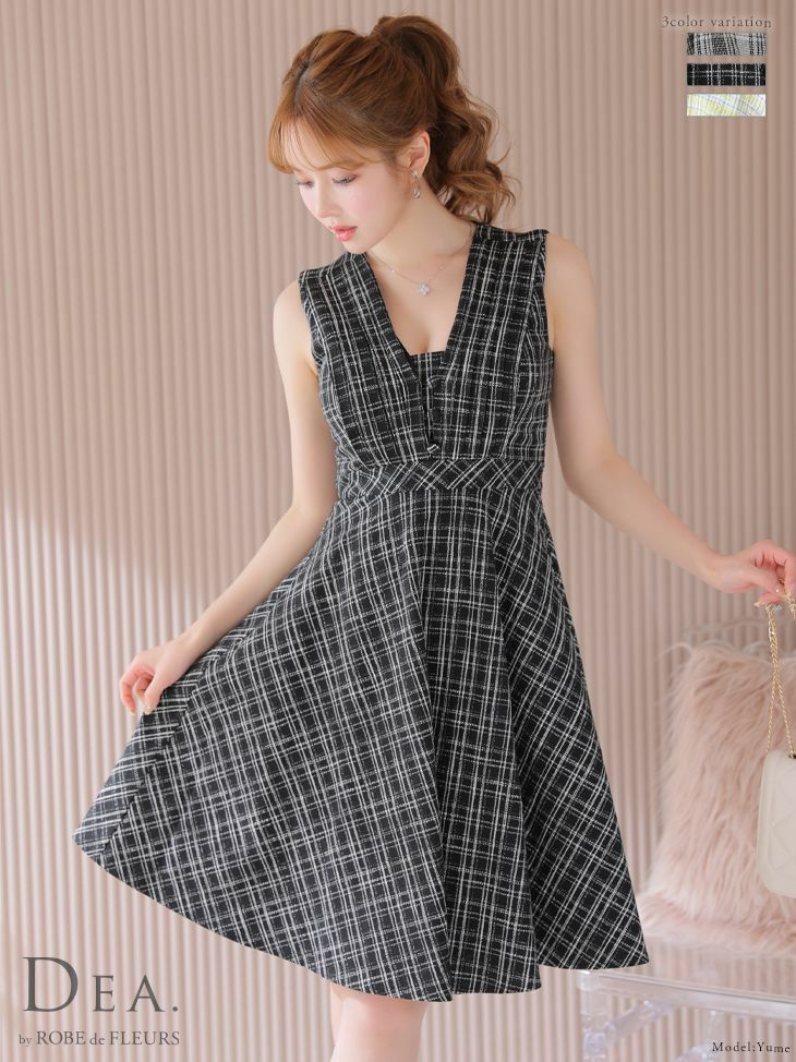 他の画像を見る チェックツイードが可愛い☆ [DEA.byROBEdeFLEURS/ディアバイローブドフルール] 高級ノースリーブVネックチェック柄ツイードフレア膝丈ワンピースドレス ¥ 28,380 税込 在庫切れ お気に入りに追加