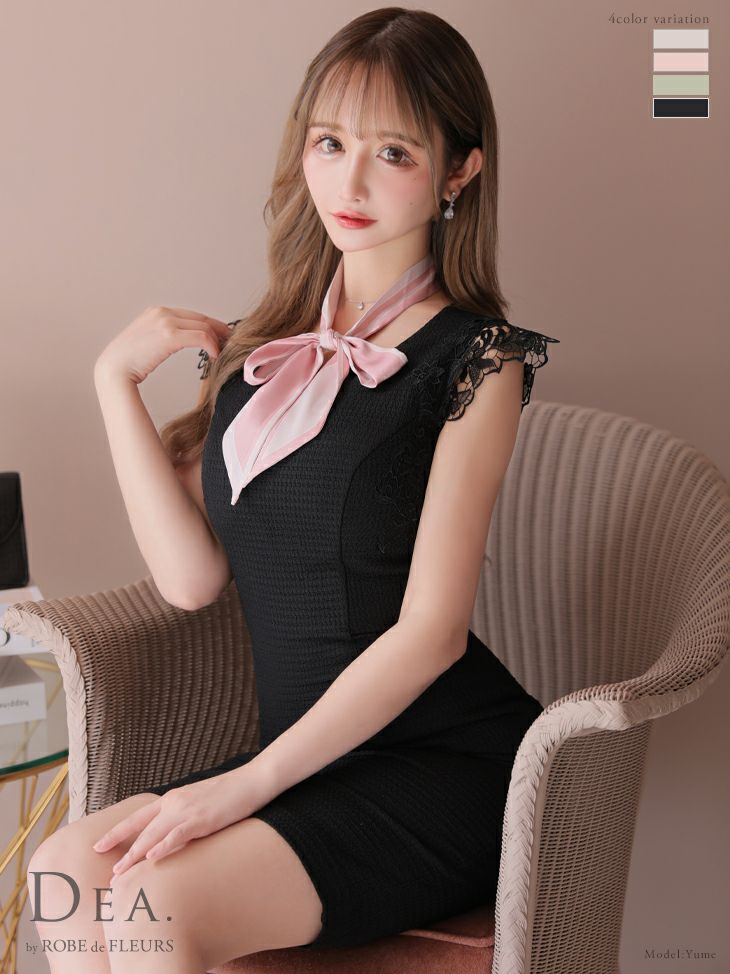 他の画像を見る シンプルに着こなすこともできます◎ [DEA.byROBEdeFLEURS/ディアバイローブドフルール] 高級スカーフケミカルレース袖ワンカラーネックリボンノースリーブタイトミニドレス ¥ 27,280 税込 在庫切れ お気に入りに追加