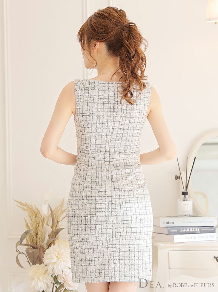 他の画像を見る シンプルなデザインが特徴♡ [DEA.byROBEdeFLEURS/ディアバイローブドフルール] 高級ツイードデコルテカットバックノースリーブタイト膝丈ドレス ¥ 28,380 税込 在庫切れ お気に入りに追加