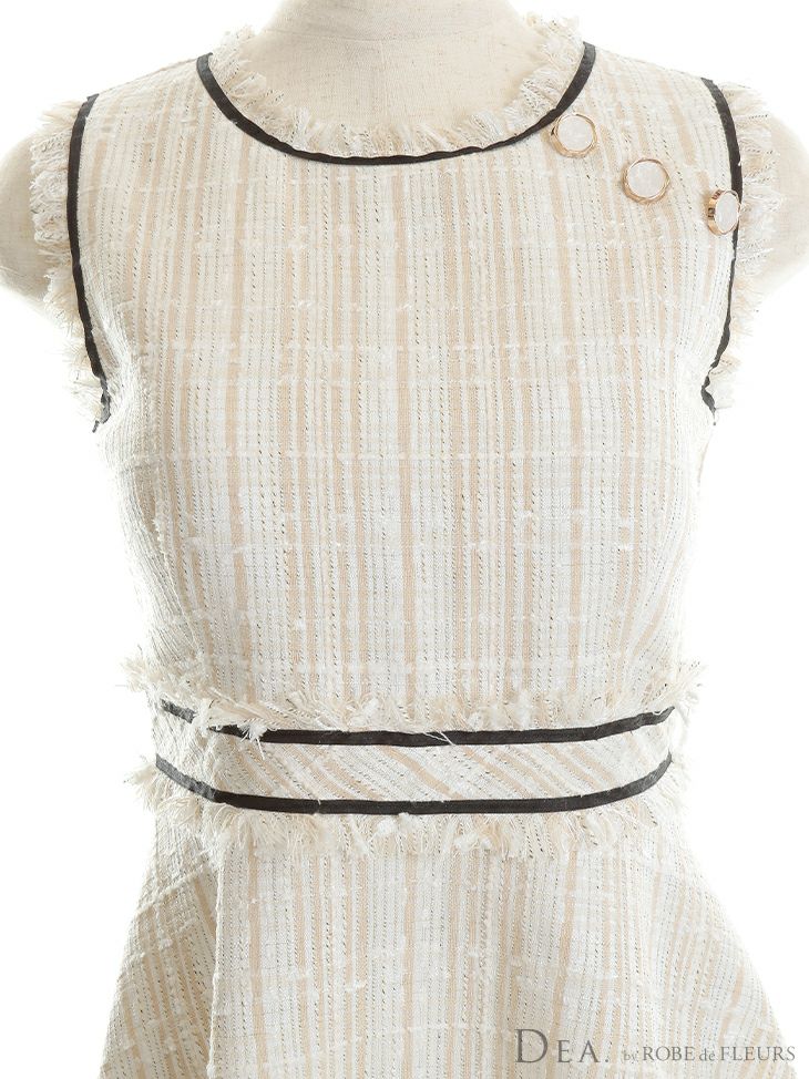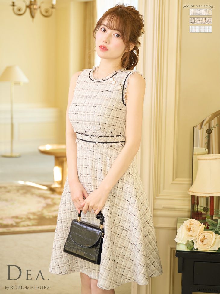 他の画像を見る 下着も選ばないので同伴にも◎ [DEA.byROBEdeFLEURS/ディアバイローブドフルール] 高級チェック柄フリンジパイピングツイードワンピースウエスト切替ノースリーブフレア膝丈ドレス ¥ 27,280 税込 在庫切れ お気に入りに追加