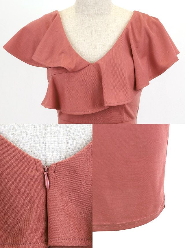 半袖 フリル袖 ワンカラー シンプル タイトミニドレスのメイン画像