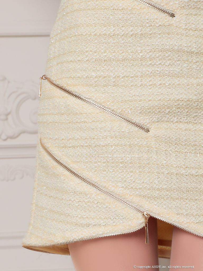 タイトなシルエットがセクシー☆ [an/アン] 高級 ワンショルダー ジップ ツイード パールチェーン 2way アシンメトリー ファスナースリット タイトミニドレス