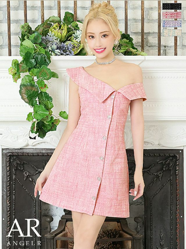 5. [Angel-R/エンジェルアール] 高級ビックカラーワンショルダーツイードフレアミニドレス