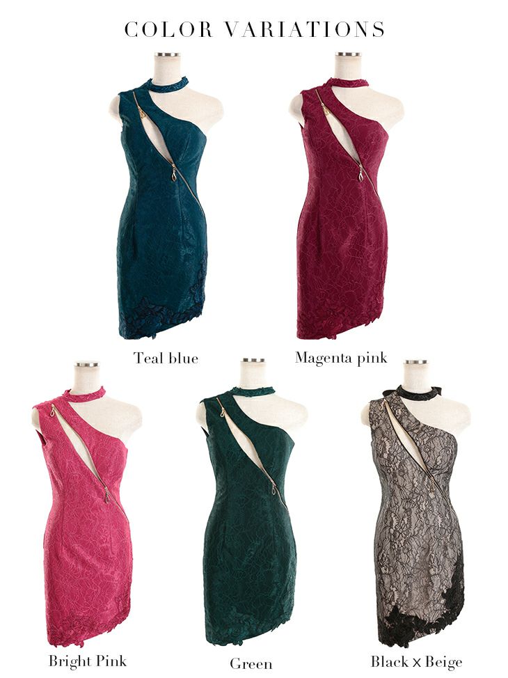 4. [ROBEdeFLEURSGlossy/ローブドフルールグロッシー] 高級ジッパーワンショルダーストレッチタイトミニドレス