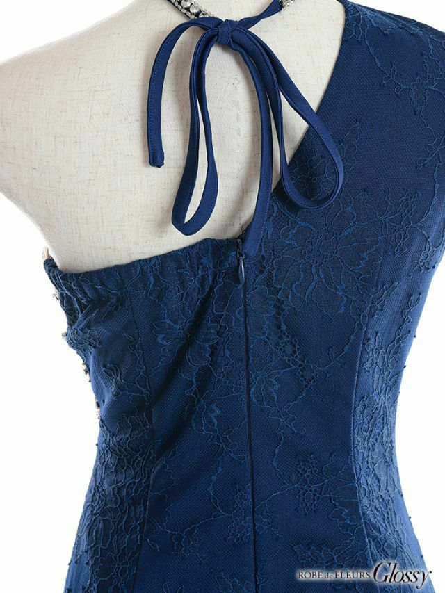 セクシーなアシンメトリーデザイン☆ [ROBEdeFLEURSGlossy/ローブドフルールグロッシー] 高級ビジュー×ファスナーワンショルダーストレッチタイトミニドレス