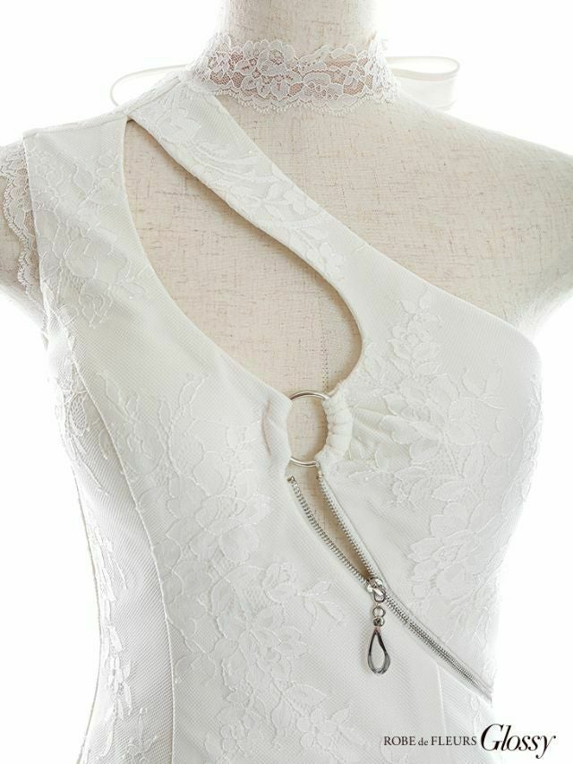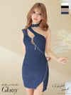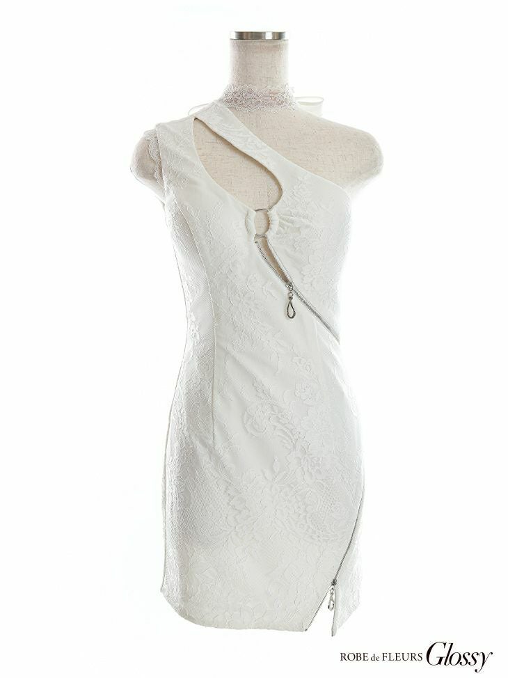 キャバドレス ミニドレス [SALE] [ROBEdeFLEURSGlossy/ローブドフルールグロッシー] 高級フープ×ジップウエストカットワンショルダータイトミニドレス