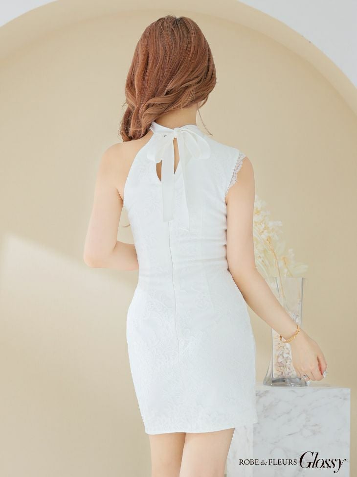 アシンメトリーホルターネックデザイン☆ SALE [ROBEdeFLEURSGlossy/ローブドフルールグロッシー] 高級 フープ ジップ ウエストカット ワンショルダー ファスナースリット タイトミニドレス