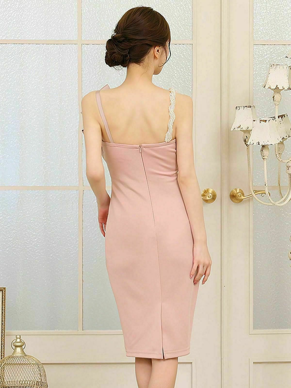 他の画像を見る sexyなデコルテラインをアピール♡ [Veautt/ヴュート] 高級 ビッグリボン ワンショルダー パールストラップ付き バックスリット タイト 膝丈ドレス ¥ 30,580 税込 お気に入りに追加