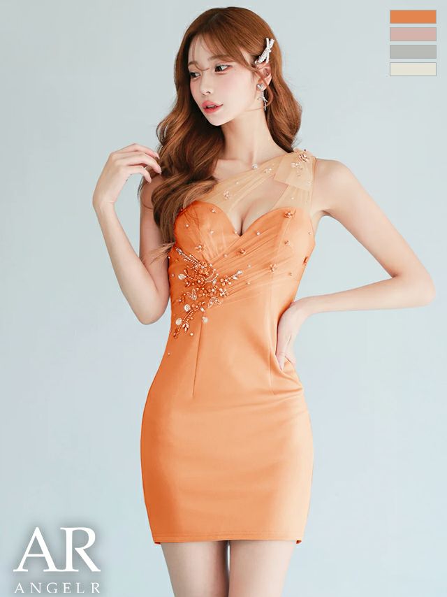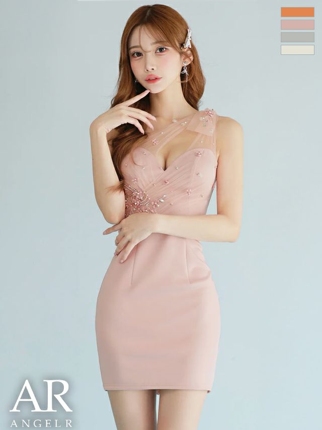 他の画像を見る ゴージャスなビジューが煌めく☆ [Angel-R/エンジェルアール] 高級 ワンショルダー バストカット ビジュー ヌーディー くびれ 谷間魅せ タイトミニドレス ¥ 29,480 税込 お気に入りに追加