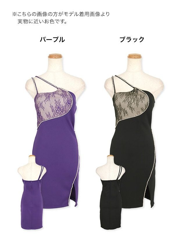バストレース切替デコルテビジューワンショルダータイトミニドレスの商品詳細画像1