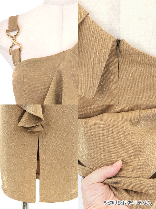 膝丈ドレス タイト ワンショルダー風 フリル アシメショルダー グリッターラメ シンプル 胸元カバー 大人 上品 ストレッチ スリット 高身長 XL ブラック キャバドレスの商品特徴1