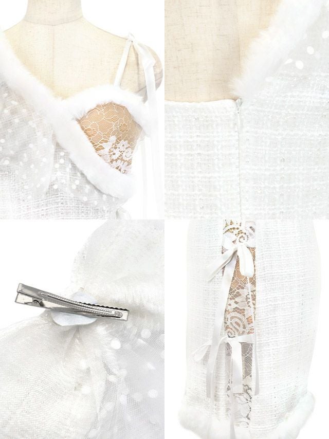 ワンショルダードットチュール胸元フリルクリスマスツイードタイトミニドレスの商品詳細1