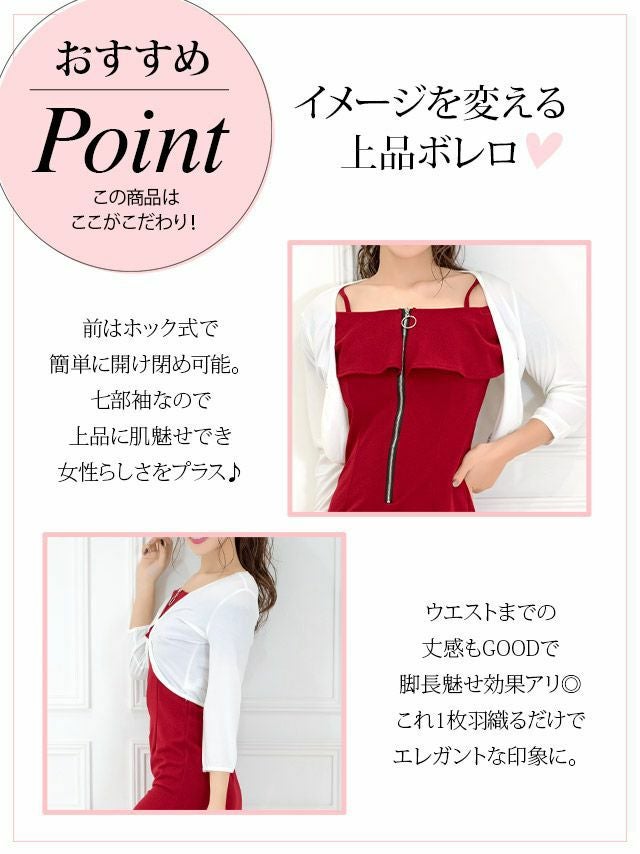 着回し万能なボレロ♪ ワンカラー前ホック七分袖ボレロ (向葵まる着用)
