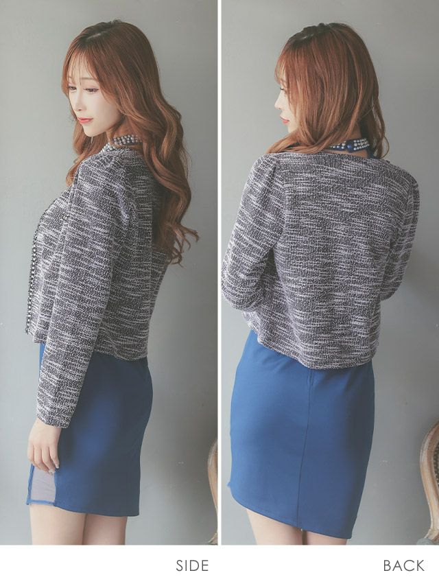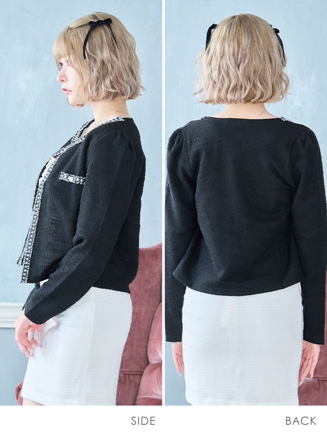 パーティー ボレロ ノーカラーツイードボレロカーディガン アイボリー グレー ブラック Mサイズ レディース カーディガン 結婚式 二次会 可愛い かわいい 人気 安い 激安 通販