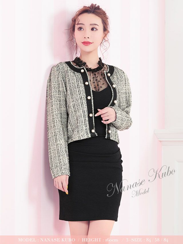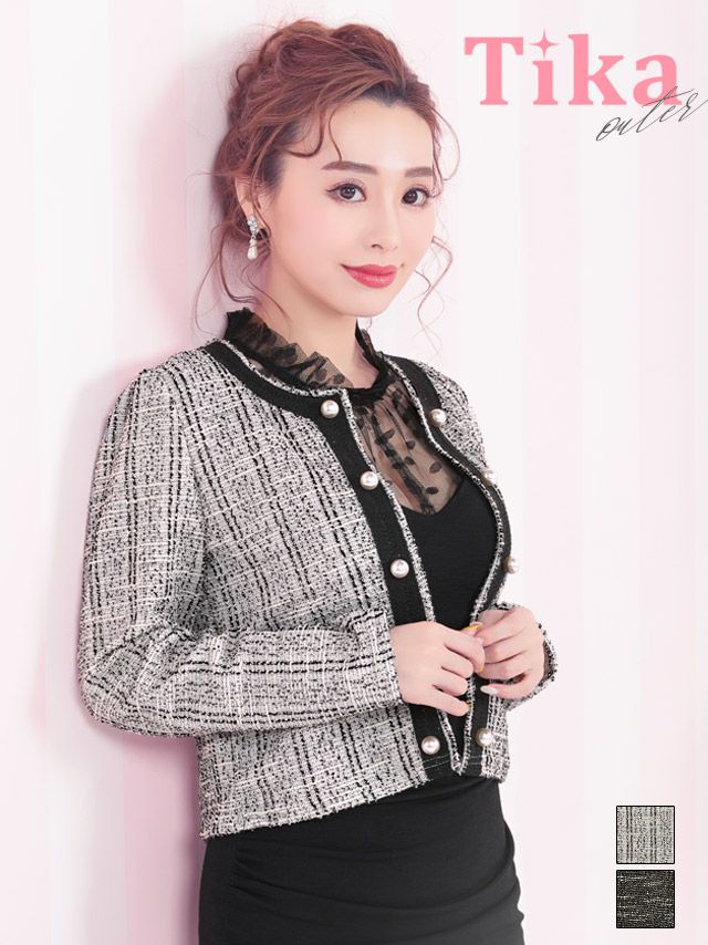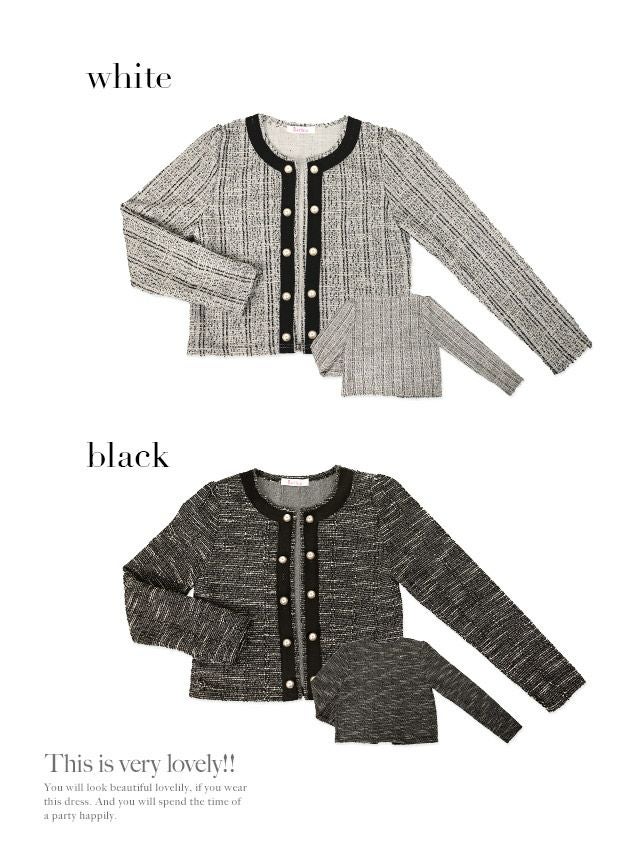 羽織り キャバクラ カーディガン ボレロ ショート丈 結婚式 お呼ばれ Tika ティカ 縁取りノーカラーパールニットボレロカーディガン
