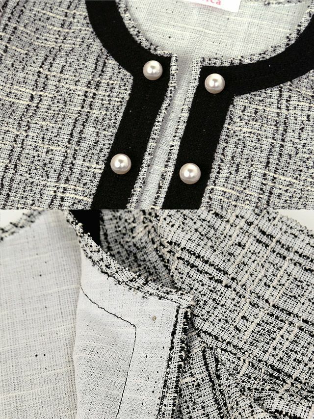 縁取りノーカラーパールニットボレロカーディガンの商品詳細画像