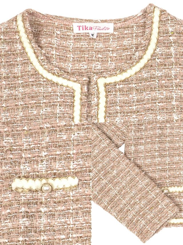 羽織り カーディガン ボレロ ジャケット キャバクラ 韓国 長袖 Tika ティカ ツイード風縁取りボレロカーディガン