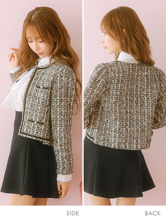 ツイード風配色ショート丈ボレロカーディガンのカラバリ画像