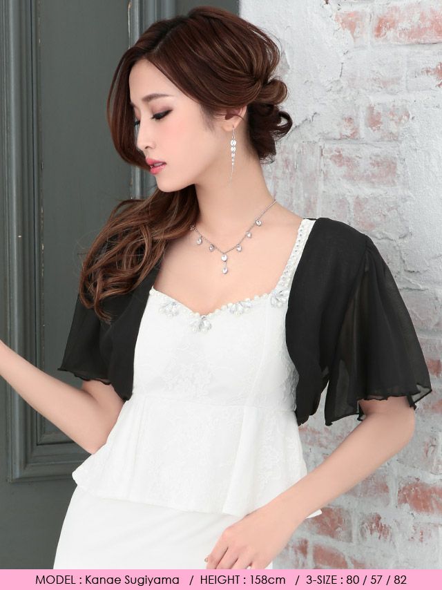 シフォンレースショートスリーブボレロメイン