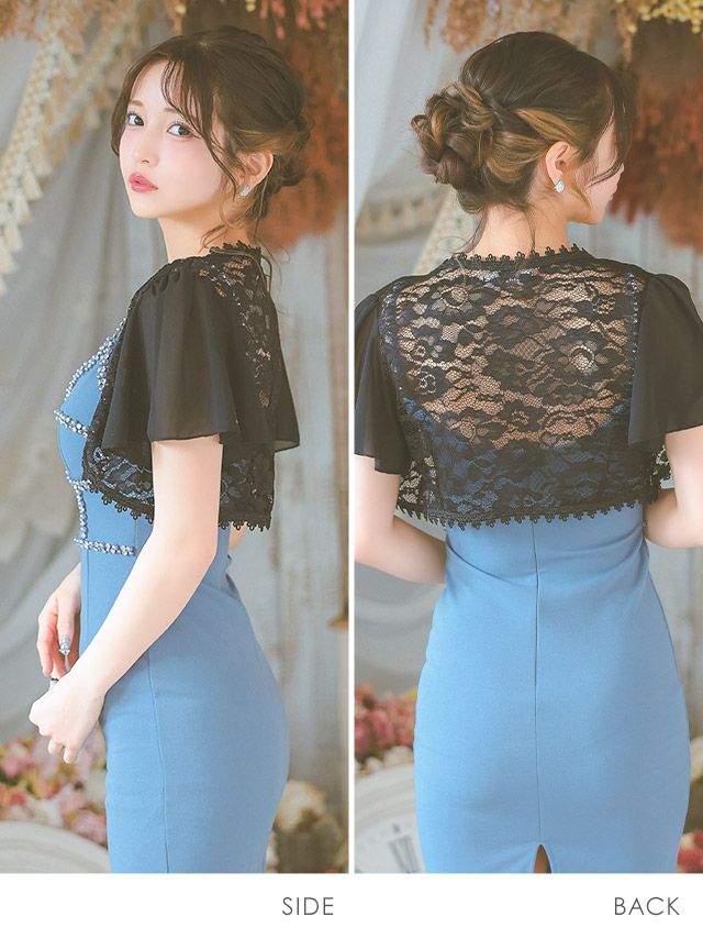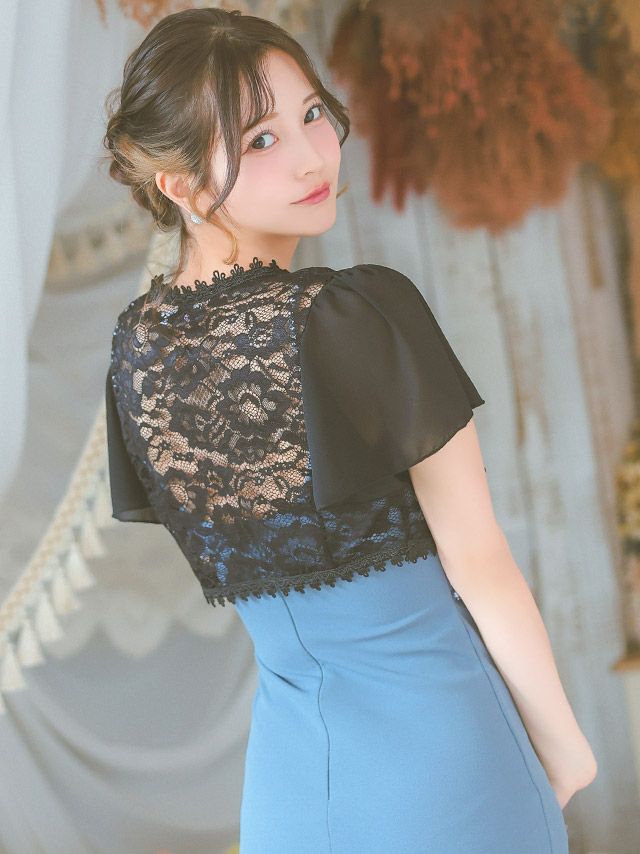 5. 半袖 シフォン ショート丈 レース ボレロ (聖菜/羽織り着用)
