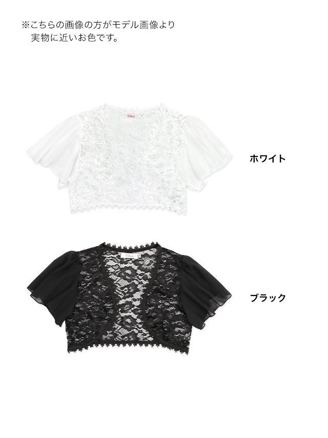 3. 半袖 シフォン ショート丈 レース ボレロ (聖菜/羽織り着用)