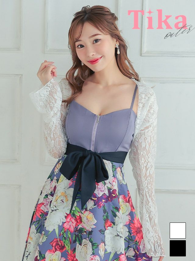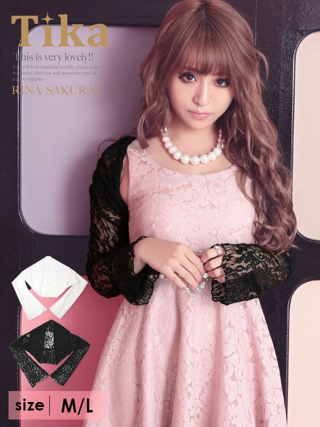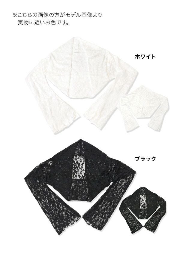 ドレスにぴったりな万能ボレロ♪ フラワー柄総レースセクシー長袖 袖ありボレロ (久保七瀬/羽織り着用)