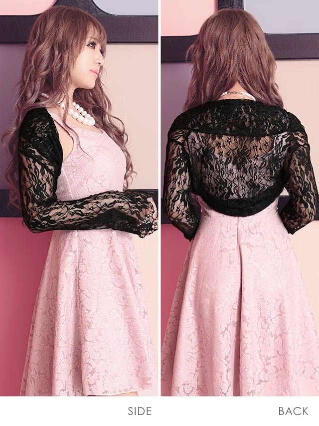 5. ボレロ 花柄 総レース 長袖 二の腕 体型カバー 羽織り (黒嵜菜々子着用)