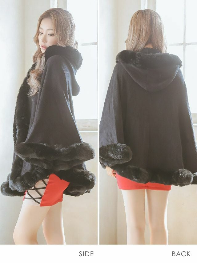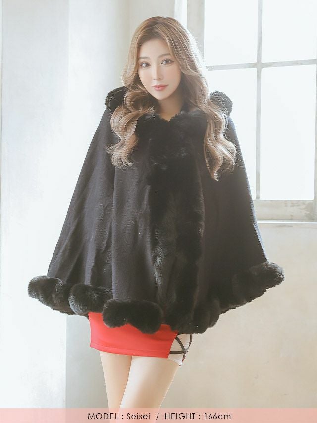 [SALE] フェイクファーケープフード付き大判ショール (重川茉弥/羽織り着用)