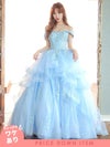 ちょっぴり訳ありの為、激安価格◎ [ワケありセール] [LA直輸入] オフショルダーエレガントビジュー刺繍バックスピンドルゴージャスラメインポートチュールロングドレス (XSサイズ〜Mサイズ) (椎名美月/キャバドレス着用)